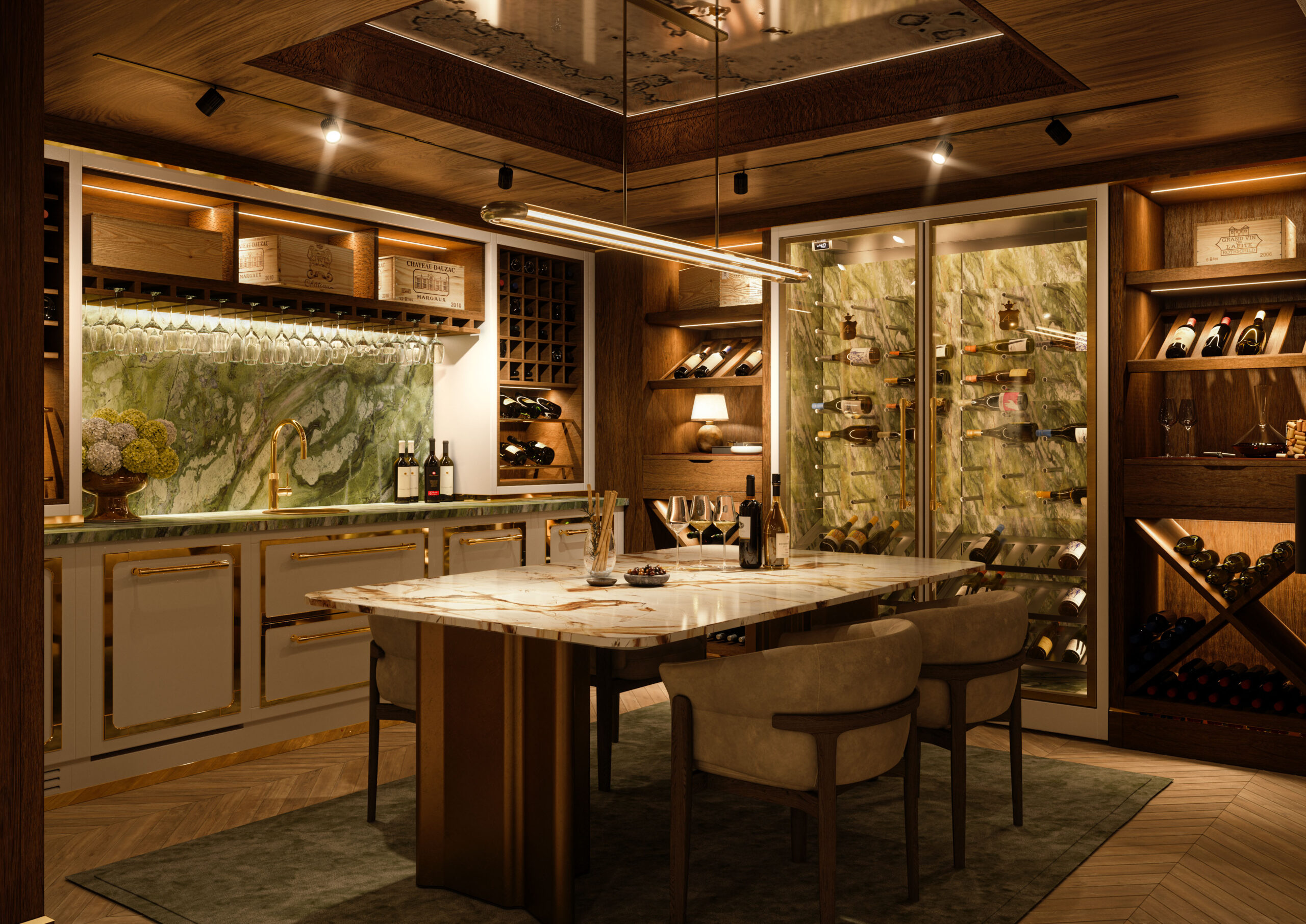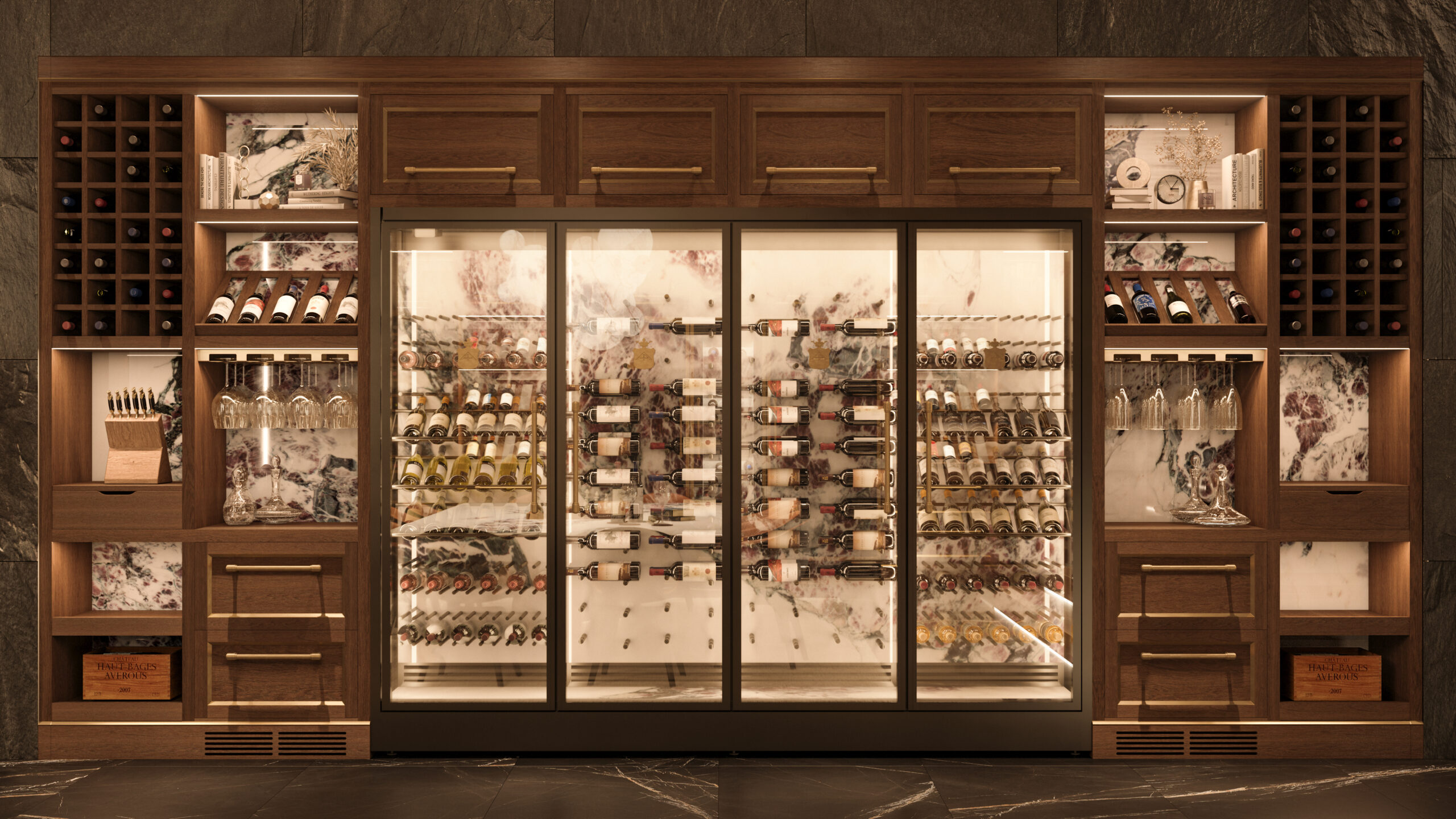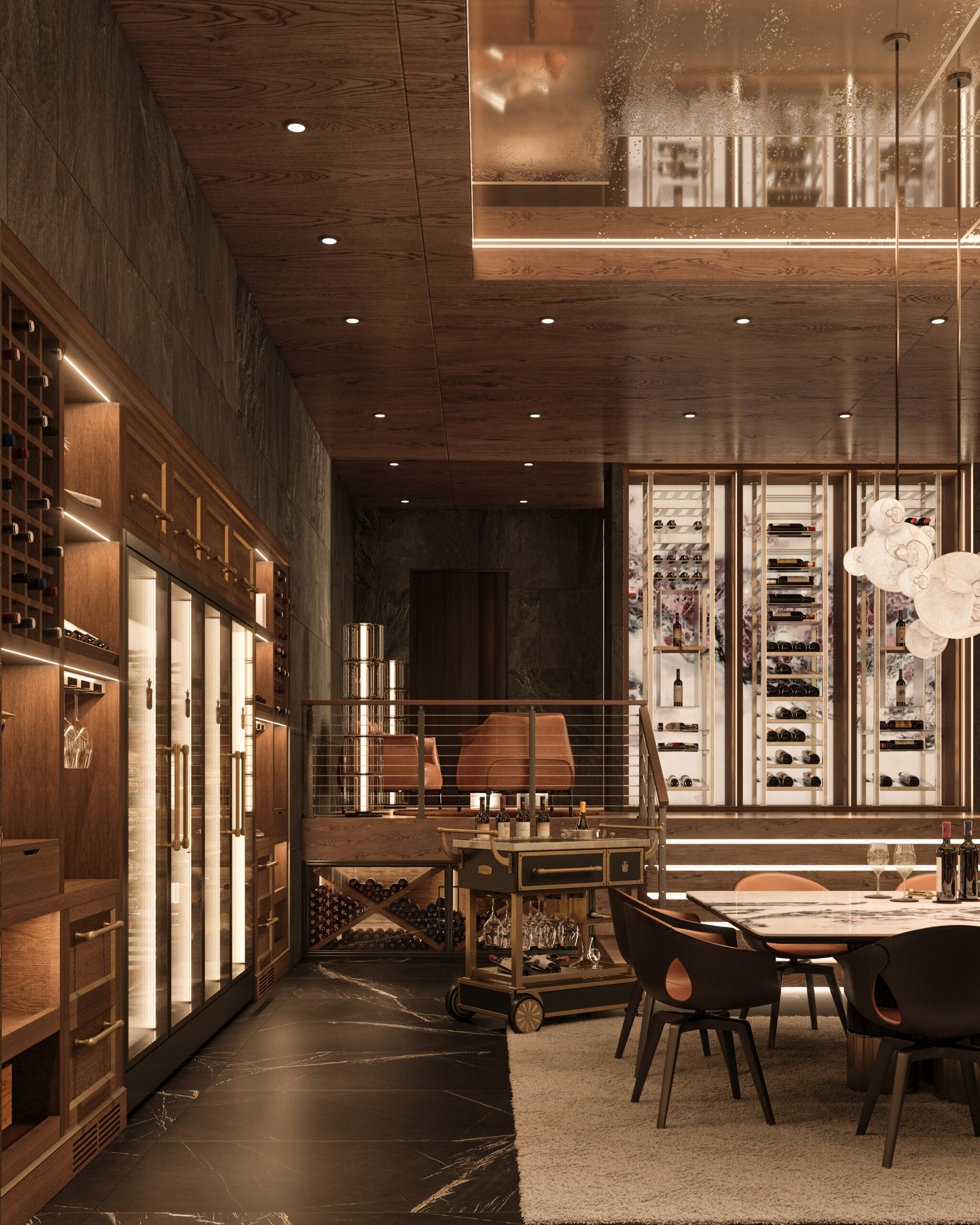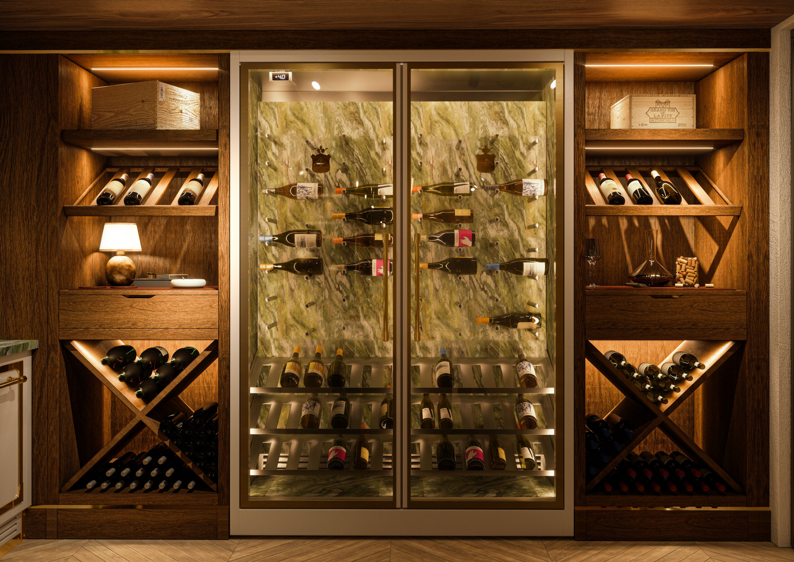 Not simply domestic cellars, but true experiential spaces where wine becomes the protagonist of moments of gathering and conversation. Environments designed to welcome tasting with natural elegance, where architecture, design, and technology interact harmoniously to ensure ideal preservation conditions.